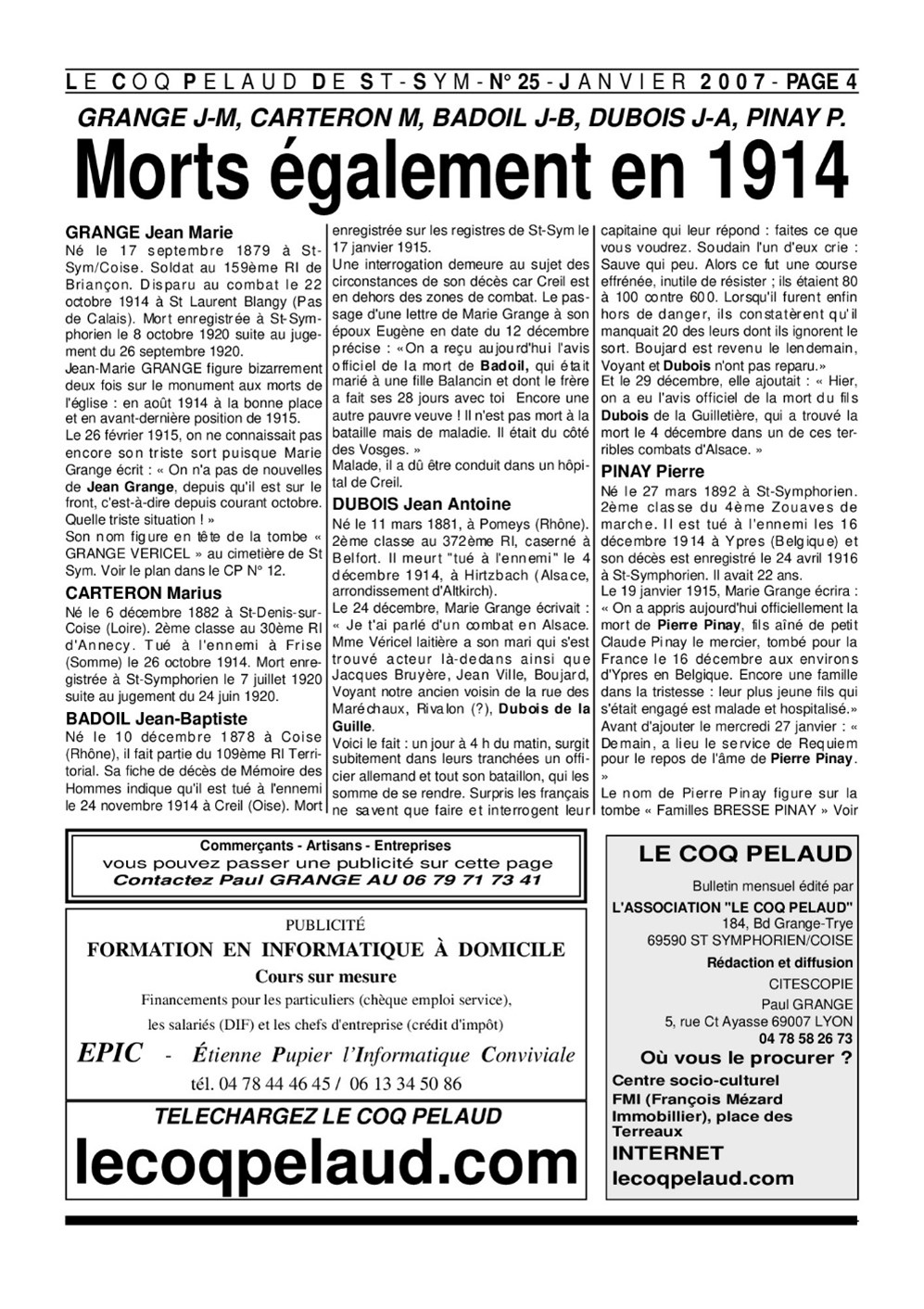 Dans un article de 2007 du « Coq Pelaud de St-Sym »